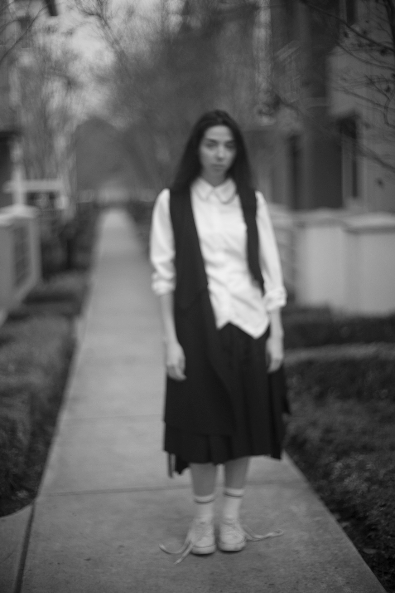 The series moves through blurred interiors, open spaces, and a figure who appears present but never quite settled — navigating rooms, streets, and landscapes that feel inhabited but not owned. She is there, but not yet home. Like me.